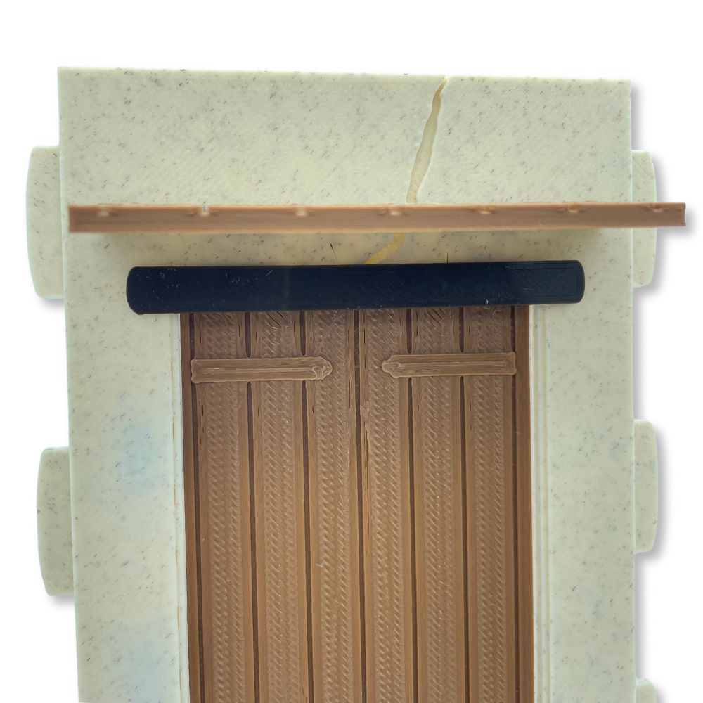 - Incluye el dintel, el porche, la puerta y bisagras, van encajados, sin necesidad de pegarlos.